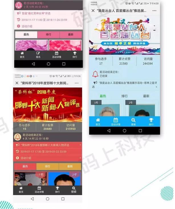 河北碼上網絡科技有限公司是一家專注互聯網行業技術開發的公司。和本地多家規模較大的企業和政府部門有過合作,打造過多個邯鄲本地30+萬粉絲的公眾號。公司有多名技術研發人員,在服務器并發高承載上有多年經驗,可承接大型線上線下大型活動。
