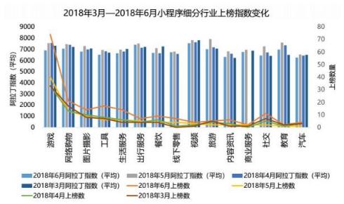從阿拉丁顯示的小程序上榜數(shù)量來看,游戲、網(wǎng)絡(luò)購物、圖片攝影、生活服務(wù)、工具、出行服務(wù)、餐飲等都呈現(xiàn)出一定的增長趨勢。