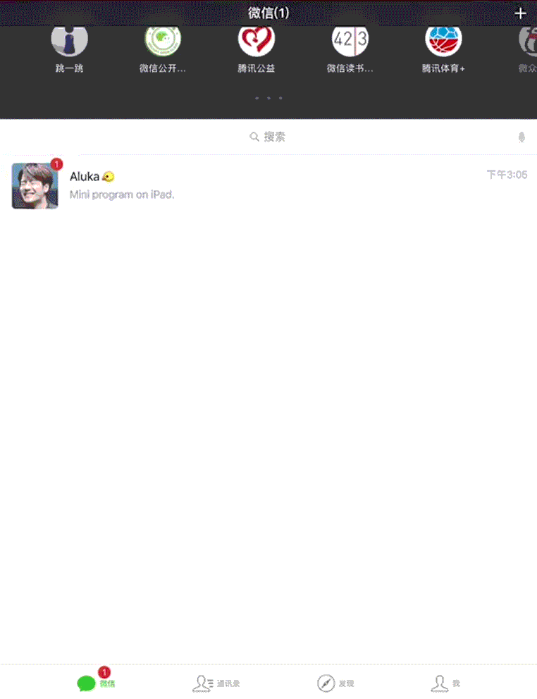現在想要在iPad上使用小程序的用戶,首先你需要將微信更新至 iOS 6.7.2 版本,該版本不僅對小程序全面支持,還新增了小游戲功能。和iPhone設備一樣,用戶可通過小程序的各個入口打開小程序和小游戲。