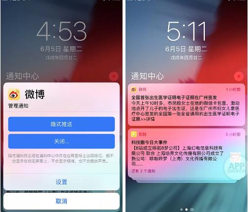 此外,你還可以對應用設置「隱式推送」,被設置應用的新消息推送將只會在通知欄上出現,雖然會顯示消息角標,但不會出現在鎖屏上,也不會顯示橫幅或播放聲音。