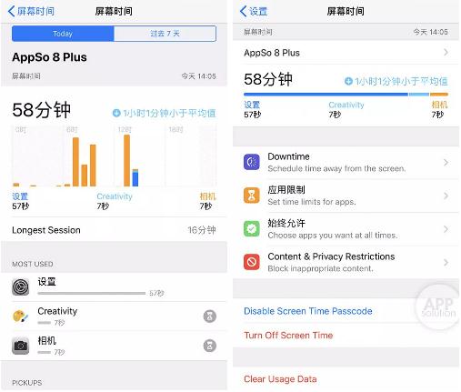 屏幕時間功能將統計你每周使用手機的情況,包括查看 app 的使用頻次、時長。包括 iPhone 究竟屏幕喚醒了多久,你在哪些 app 上停留的時間最長,甚至屏幕喚醒次數、通知查看次數都能查得到。