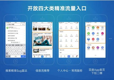 其一,截至目前,百度四大超級入口中,搜索入口包括尋址卡、精準sug直達、精準語音直達、熊掌號掛載、自然結果、阿拉丁等,信息流入口包括信息流直接推薦、百家號作者在文章頁主動掛載以及文章落地頁的自動掛載等,固定入口及回訪入口包括百度App下拉二樓、個人中心頁等。