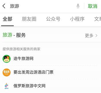 例如搜索“旅游”,則會出現于旅游相關的小程序服務: