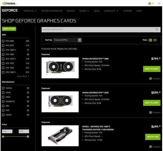 隨后,英偉達(dá)又將 RTX 2080Ti 的選購界面上線,但依舊顯示缺貨。