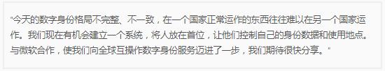 在戰(zhàn)略合作中,微軟和萬事達(dá)卡正在一項(xiàng)服務(wù),該服務(wù)將“允許個人使用他們的個人設(shè)備以他們的方式進(jìn)入,控制和共享他們的身份數(shù)據(jù)”。兩家公司聲稱這將簡化和簡化利用金融,電子商務(wù),政府和數(shù)字服務(wù)的過程。