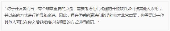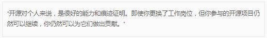 Doug Cutting 認為所有軟件者都應該將開源納入自己的職業(yè)規(guī)劃, 因為會有更多雙眼睛看到你的代碼。你會擁有一個更大的社區(qū),他們知道你正在做什么,他們會給你提交建議和反饋,他們可以直接參與你的項目,這對你的職業(yè)生涯有益。