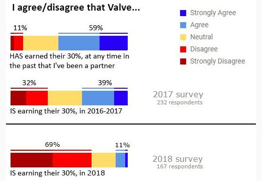 這則調查報告名為“Valve 應該知道的所有事,3.0”。因為調查員 Lars Doucet 要和 Valve 面談,所以今年的調查不如往年全面。但這則報告的確展現出了許多游戲開發者對 Valve 以及 Steam 的運作方式不滿意。