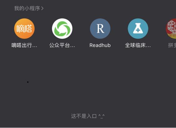 后來微信還是慢慢給小程序增加了一些「入口」,比如在聊天頁面下拉可以調出用戶最近使用過的小程序。即便如此,微信還不忘跟大家開個玩笑,當你按住屏幕,把聊天頁面拉到最底端時會發現一行小字,「這不是入口 ^_^」