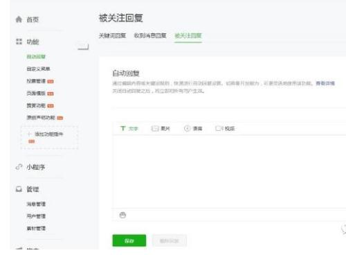 3.關鍵詞回復,當收到的消息出發到所設置的關鍵詞時,觸發所設置的文章。