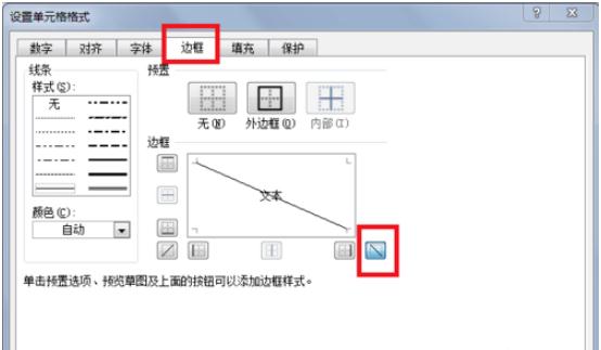 在彈出的“設置單元格格式”的設置頁,找到“邊框”,點擊右下角的斜線,確定,即可在單元格內(nèi)插入斜線,如下圖所示: