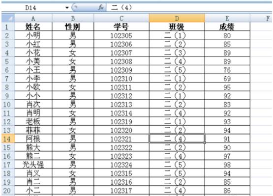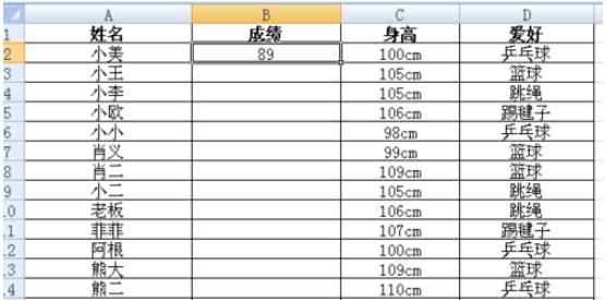 完成上述步驟后,我們點(diǎn)擊“enter”鍵,表二第一個(gè)單元格就會出現(xiàn)小美的成績。然后我們把將鼠標(biāo)放在小美成績單元格右下角,當(dāng)光標(biāo)變成“十”字的時(shí)候,按左鍵不放,往下拉到最后一個(gè)單元格,我們就可以表二所有成績都引用填充好。