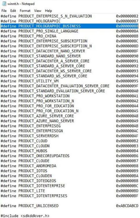 開(kāi)發(fā)人員在系統(tǒng)定義中發(fā)現(xiàn)了 PRODUCT_HOLOGRAPHIC_BUSINESS,它與 PRODUCT_HOLOGRAPHIC 并列。這是兩個(gè)全新 Windows 10 SKU。