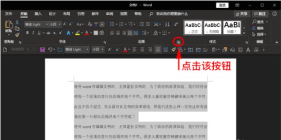 在開始菜單的下拉子菜單中找到“段落”欄目,然后點擊“段落”欄右下角的擴展折疊按鈕進(jìn)入。