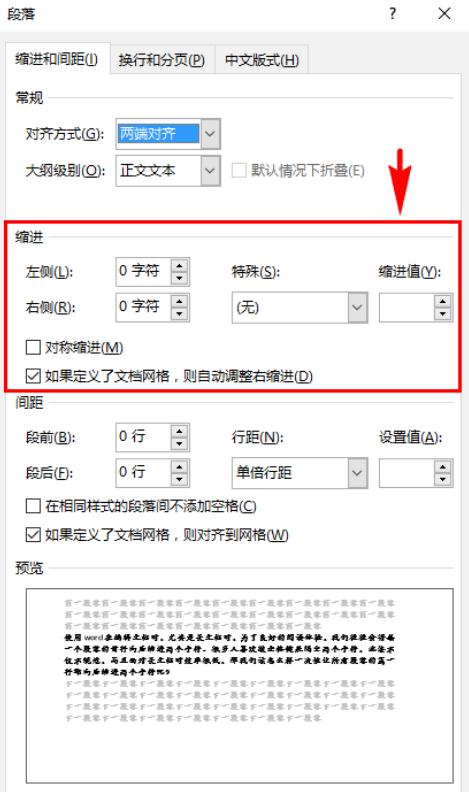 點擊之后,就會彈出“段落”的設(shè)置選項彈窗,在該彈窗里面我們找到“縮進(jìn)”選項欄目組。
