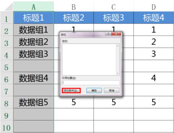 2.按F5調(diào)出定位對話框,左鍵單擊選擇"定位條件"。