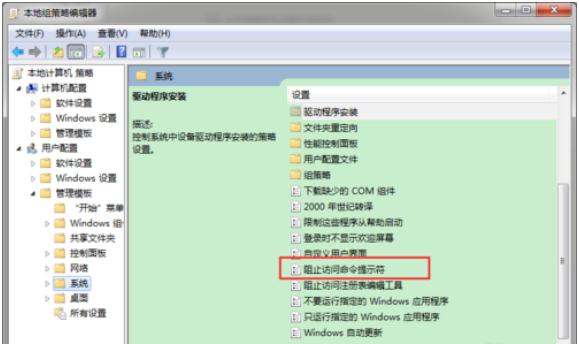 在右側(cè)主窗口中找到“阻止訪問命令提示符”配置項(xiàng);