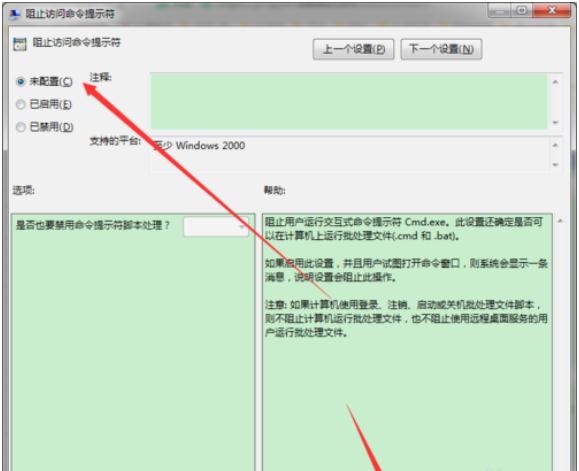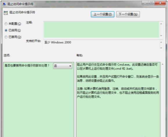 雙擊“阻止訪問命令提示符”配置項(xiàng),打開配置對話框;