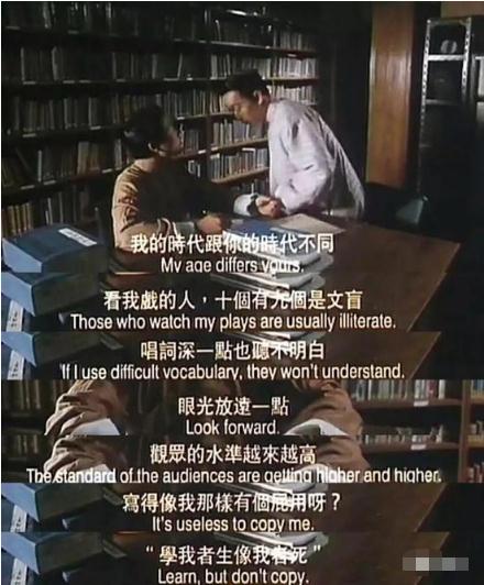 《南海十三郎》里,想來拜師的唐滌生模仿十三郎的詞句,被十三郎呵斥,說寫得像他沒有屁用,因?yàn)?ldquo;學(xué)我者生,像我者死。”