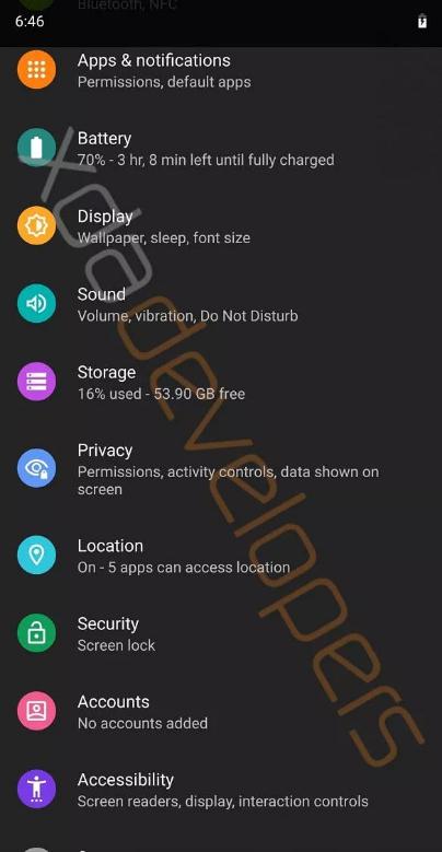 XDA 網站的屏幕截圖表明,安卓 10 系統將把黑暗模式擴展到更多的地方,包括設置菜單,它可能有一個設置來強制使用黑暗模式,即使在沒有內置黑暗版本的應用程序中也是如此。