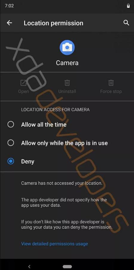 谷歌也在繼續加強用戶隱私的保護。在最近發布的安卓版本中,谷歌對攝像頭/麥克風訪問和后臺應用等方面實施了更嚴格的規定,看起來該公司將添加一個新的“僅允許運行中的應用程序訪問”的許可。