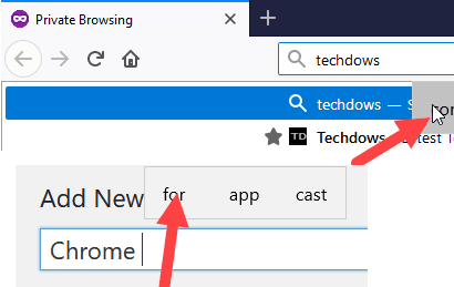 現(xiàn)在在 Chrome 中,如果用戶訪問 Omnibox 或中的文本字段并輸入內(nèi)容,則會在用戶輸入時彈出文本建議,就像他們在 Firefox 中為我們所做的那樣(請查看下面的截圖)。