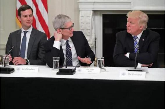 蘋果公司首席執行官蒂姆·庫克(Tim Cook,左)與美國總統唐納德·特朗普(Donald Trump)