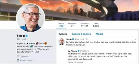 此前,在美國勞動力政策咨詢委員會的一次會議上,特朗普總統弄錯了庫克的名字,稱他為“蒂姆·蘋果”。在科技媒體 The Verge 首先報道這個錯誤后不久,這條信息在社交媒體上流行起來,最終成了 Twitter 上的熱門話題。現在,庫克已經改變了他在 Twitter 上的展示名,顯然是為了與互聯網上的每個人同樂。