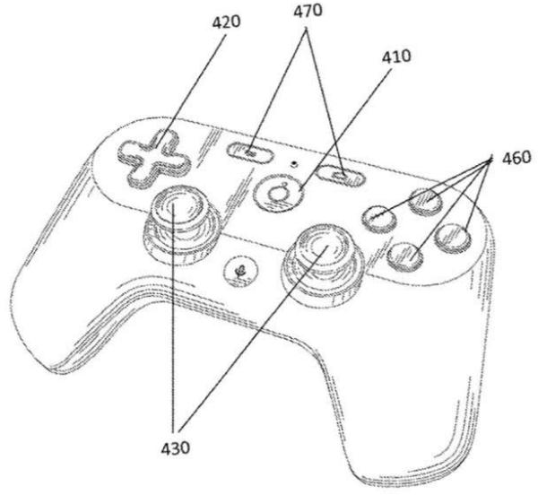最近公布的一項專利揭示了另一個有趣的信息。此專利已頒發給谷歌(專利號:US 2019/0030425 A1),它詳細介紹了開發游戲控制器的計劃,該游戲控制器可以在具有本地處理器和存儲空間的主機設備和網絡之間發送和接收信號。該控制器讓人想起在 Xbox One 和 PlayStation 4 上游戲機上使用的控制器,并具有類似的D-Pad/雙模擬棒、麥克風以及各種按鈕和觸發器。