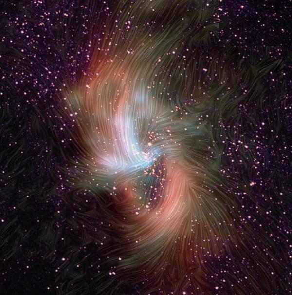NASA 的研究人員利用安裝在飛行望遠鏡上的遠紅外光探測器繪制出了這片磁場,以進一步探測銀河系中心黑洞周圍的星際塵埃運動。和許多星系一樣,銀河系的中心也有一個超大質量黑洞,研究人員將其命名為人馬座 a *(Sagittarius A*)。