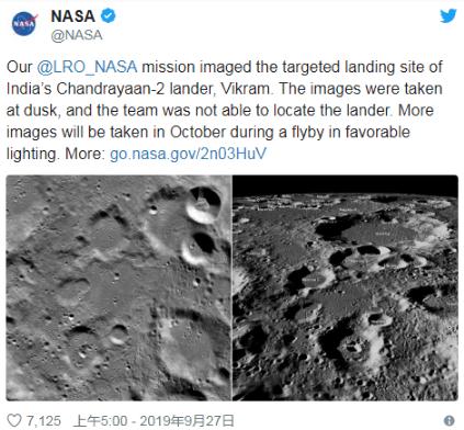 時(shí)隔三周:NASA仍未找到印度宇航機(jī)構(gòu)的月球著陸器