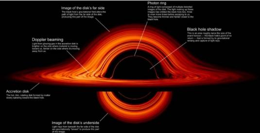 黑洞的強烈引力極大地扭曲了通過它的所有光線,而圍繞它的快速移動的材料層則發生扭曲和彎曲。正如 NASA 解釋的那樣,吸積盤的一側比另一側看起來更亮的事實是一個簡單的物理問題。