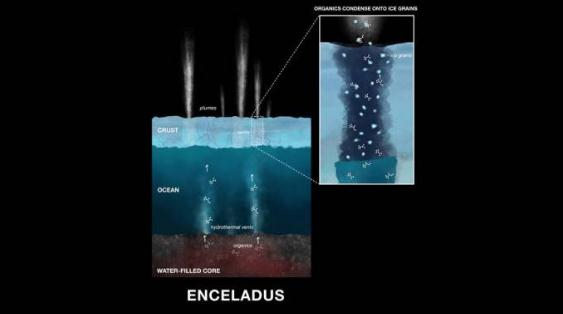 這些噴口強大到足以噴射出結冰的物質,最終結成小顆粒的冰和水蒸氣。有趣的是,卡西尼號正是在這些冰粒中發現了新的有機化合物。