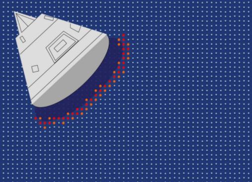 盡管在細節上可能有所不同,它們的樣子都是大同小異——上小下大,并且下面是一個很鈍的平面。這樣的鈍形平面能保證被壓縮的空氣產生的熱量主要集中于航天器鈍形一面,而不會流失到航天器后面,從而有效的保護后面的航天員或者其他科學設備。因此,現在任何的載人航天器的返回艙都被設計成鈍形的。在返回艙返回大氣層時,它的受熱情況大概如下所示: