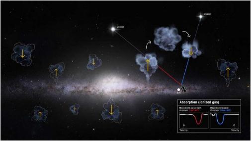這項研究是迄今關于氣體流入和流出銀河的最佳測量。天文學家現在已經知道銀河系的氣體儲備可以通過流入氣體來補充,而可以通過氣體流出來消耗。這個過程很重要,因為它調節了新的恒星和行星形成過程。