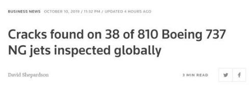 FAA在10日晚些時(shí)候表示,“美國(guó)一小部分飛機(jī)已經(jīng)停飛,波音公司也向客戶(hù)的受影響飛機(jī)提供維修和更換零部件指導(dǎo)。”還補(bǔ)充說(shuō)道:“正在該機(jī)型制造商(波音公司)和其他國(guó)際航空安全監(jiān)管機(jī)構(gòu)合作,以更好地理解裂紋形成的原因。”