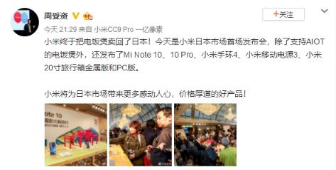12 月 9 日,小米正式進(jìn)入日本市場,一口氣發(fā)布了五個品類六款產(chǎn)品,其中主打明星自然是小米 Note 10(小米 CC9 Pro),但是令小米最自豪的,其實是那個不起眼的電飯煲。