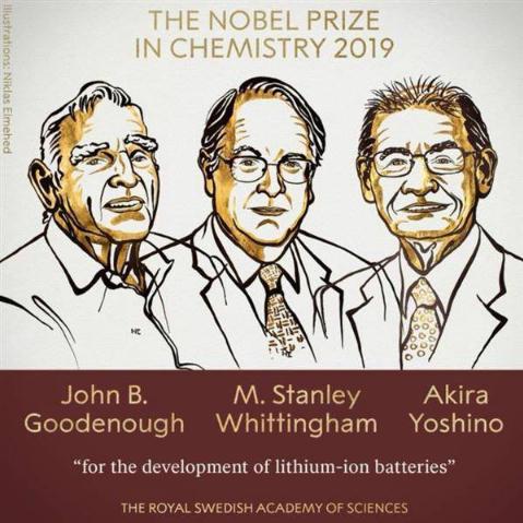 此次,和古迪納夫共享諾貝爾化學獎的還有美國賓漢頓大學的M·斯坦利·威廷漢和日本旭化成集團研究員、名城大學教授吉野彰,威廷漢被稱為可充電鋰離子電池之父,吉野彰在1983年運用鈷酸鋰陰極和聚乙炔陽極制出了世界第一個可充電鋰離子電池原型。