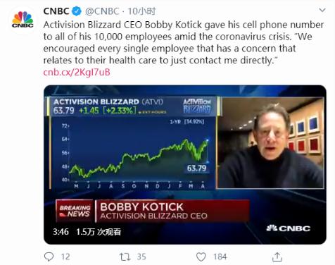 最近 Bobby Kotick 接受了 CNBC 的采訪,談到了動(dòng)視暴雪在這次疫情期間確保公司員工健康和安全所采取的措施,包括從制定在家工作政策到協(xié)助滿足醫(yī)療需求。