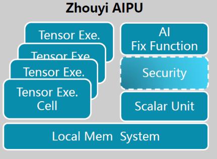 除此之外,周易 AIPU 的架構中還有可擴展的安全架構和可擴展的用戶定義架構。“可擴展的用戶定義架構其實就是給像全志科技這樣的戰略合作伙伴準備的,因為有的客戶可能很簡單地把 AIPU 集成下來就可以了,但也有一些比較有深入研究的芯片公司,會對里面的算子有自己定制的理解和需要。”劉澍進一步指出,