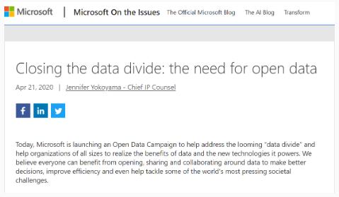 微軟發起了一項“開放數據運動”,旨在幫助解決迫在眉睫的“數據鴻溝”,并幫助各種規模的組織實現數據的利益以及它所支持的新技術。