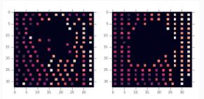 然后,前饋神經網絡將其作為一個聚合輸入,輸出一個學習到的表示方法,該方法可以捕捉有用的特征,并幫助在所有可能的網格單元中生成一個概率分布,通過策略網絡可以將當前節點放置在該節點上。整個過程可以用下面的 GIF 來封裝。左邊的芯片顯示了從頭進行的宏放置,右邊的芯片則是對一些初始放置進行微調。
