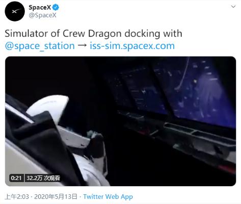 據外媒 CNET 報道,SpaceX 公司載人龍飛船歷史性的首次載人飛行計劃于 5 月 27 日進行,屆時將搭載兩名宇航員前往國際空間站(ISS)。SpaceX 周二在網上發布了一個對接模擬器,讓任何人都可以嘗試將載人龍飛船與國際空間站安全“對接”。