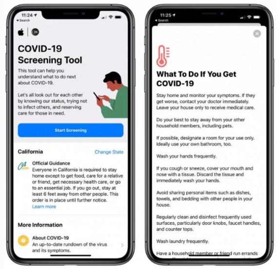 蘋(píng)果公司與 CDC、白宮冠狀病毒工作組和美國(guó)聯(lián)邦應(yīng)急管理局(FEMA)合作創(chuàng)建了 COVID-19 應(yīng)用和網(wǎng)站。除了周四介紹的功能外,蘋(píng)果公司提供的工具還讓用戶回答一系列關(guān)于風(fēng)險(xiǎn)因素、近期暴露和癥狀的問(wèn)題,以獲得 CDC 關(guān)于下一步需要采取的措施的建議。