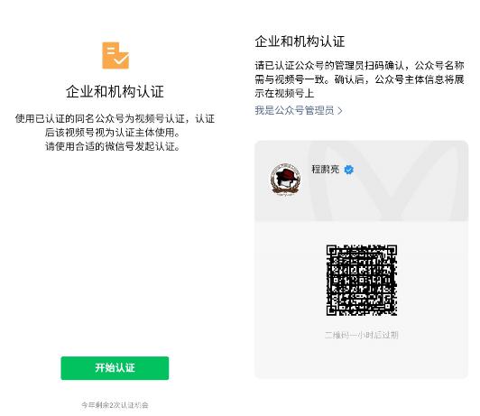 企業藍V認證,門檻非常低,只需要公眾號認證,然后視頻號名稱和公眾號一致,即可關聯公眾號進行認證,點擊企業認證,然后管理員掃碼關聯需要同步的公眾號認證信息即可,每年可以修改2次認證。