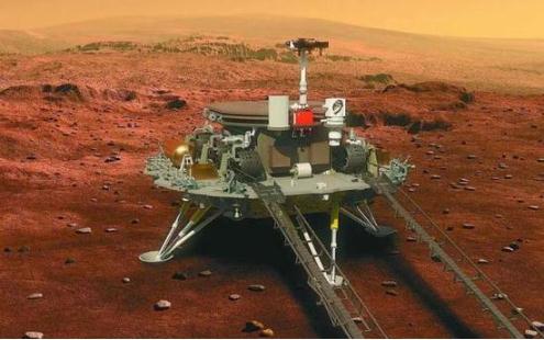 輪到中國第一輛火星車閃亮登場了。它有四片深藍(lán)色的翅膀,渾身金黃,兩根天線展開,就像蝴蝶的兩個觸角,整體視覺感受,就像是一只藍(lán)色閃蝶。它昂頭向前,首先勇敢地行駛到梯子上,然后穩(wěn)健地行駛到火星表面,在火星的表面留下了兩道車轍。不過,這個過程需要大約一周時間才能完成。至于火星車要向哪個方向行駛,現(xiàn)在誰也不知道,因?yàn)檫@需要地面的科學(xué)家根據(jù)拍攝的圖像,判斷哪里有感興趣的目標(biāo),然后才能確定火星車的行駛方向。
