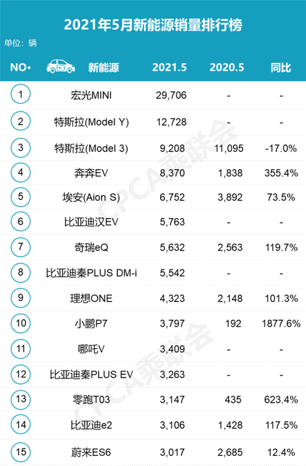 6月8日,乘聯(lián)會(huì)公布了5月國(guó)內(nèi)汽車銷量數(shù)據(jù)。意料之外的是,被負(fù)面新聞纏繞的特斯拉中國(guó),并沒(méi)有出現(xiàn)銷量大跌的情況,5月仍售出了33,463輛新車,較4月份的25,845輛增長(zhǎng)了29%。而意料之中的是,“五菱神車”宏光MINI EV以29,706輛的成績(jī),繼續(xù)占據(jù)榜首。