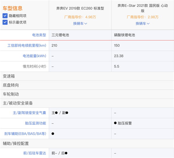 兩者雖然外觀并無(wú)差別,但作為今年1月15日上市的車型,長(zhǎng)安奔奔E-Star國(guó)民版的價(jià)格被拉低到了2.98萬(wàn)元起,比老款奔奔EV最低配版本4.98萬(wàn)元的起售價(jià),還要低了2萬(wàn)元。