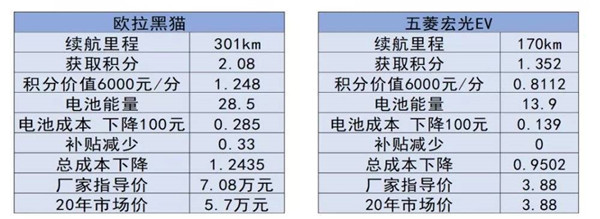 以長(zhǎng)城汽車旗下歐拉品牌的歐拉黑貓為例,2021年,一輛歐拉黑貓可獲取新能源正積分2.08分,每分價(jià)格計(jì)為6000元,電池成本可下降100元/千瓦時(shí),磷酸鐵鋰成本的降幅更大,雖然補(bǔ)貼減少了,但總成本仍可降低1.24萬(wàn)元。也就是說(shuō),電池成本的降低足以抵消補(bǔ)貼減少對(duì)企業(yè)造車成本的不利影響。