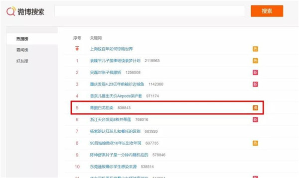 但這場(chǎng)圍獵青眼白龍“競(jìng)拍”的狂歡并未就此遏制住,反而很快沖進(jìn)熱搜前五,聚攏了更多吃瓜群眾前來圍觀。