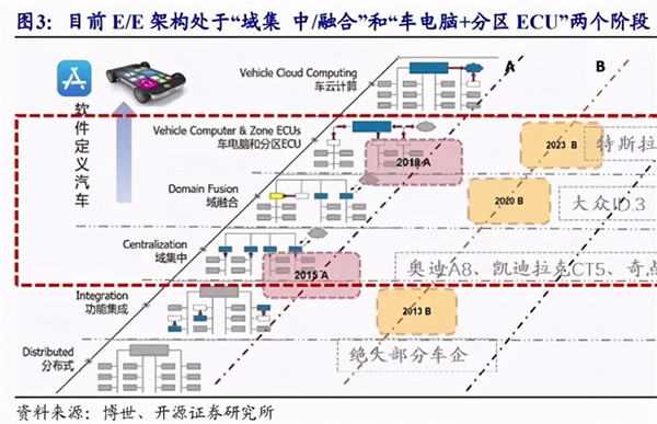 電子電氣架構就是這些ECU的布局方案,大致分為分布式、域集中式、集中式三類。